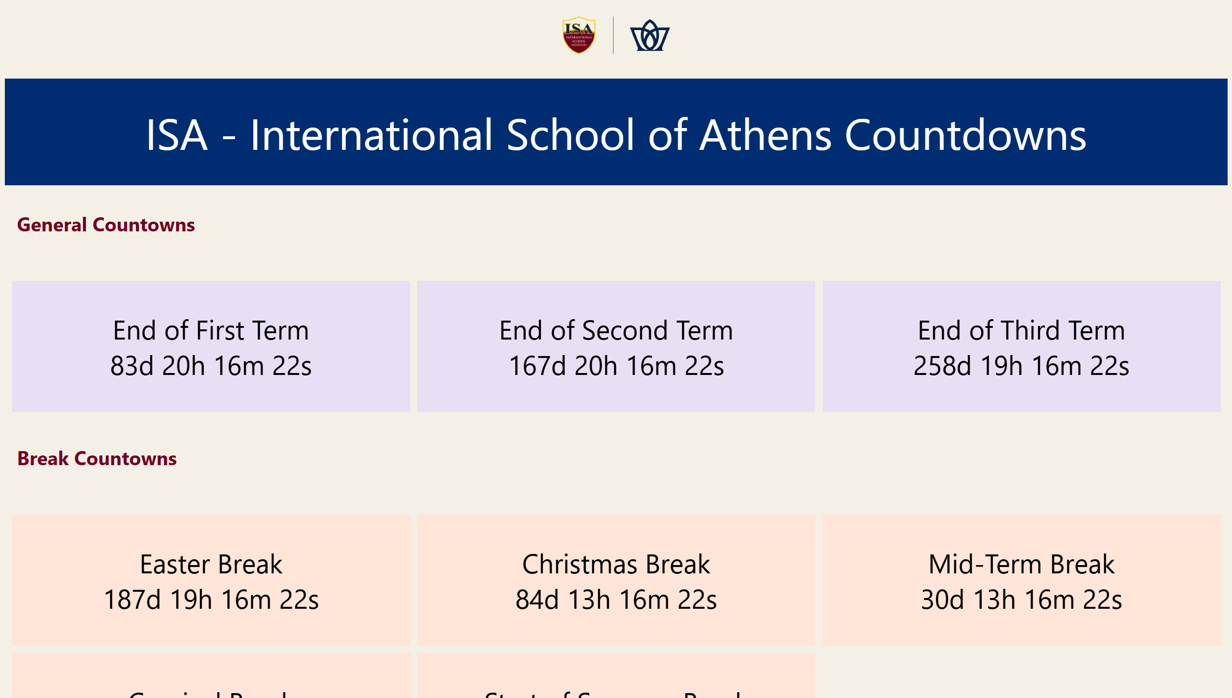 The ISA Countdown project, is something I came up with, in order to know when an event, such as a school break is going to happen, or an event such as a term is going to end. In other words, counting down to it.